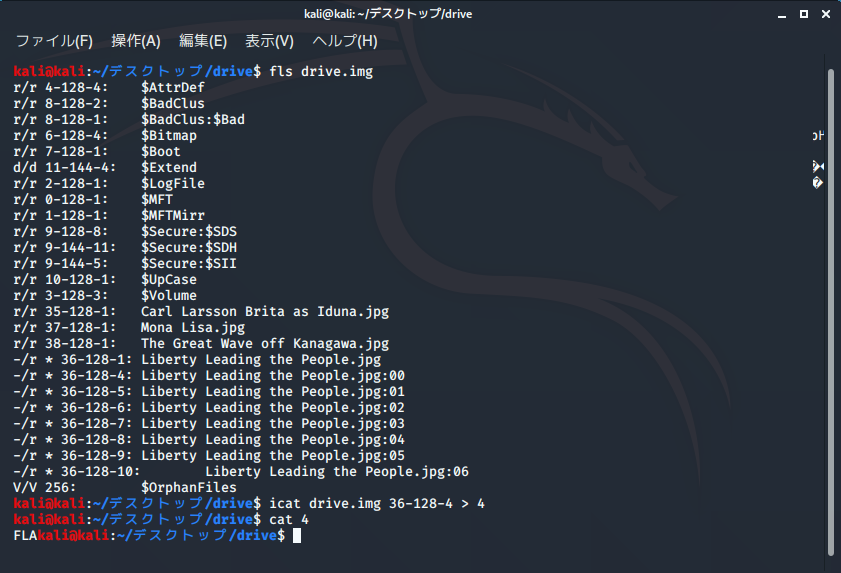 icatコマンドで36-128-1を復元すると先ほどの画像を確認できる。