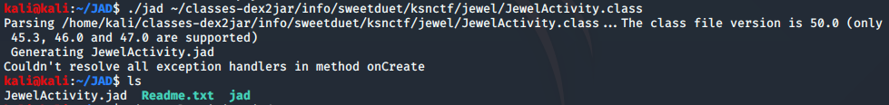 次に、JAD(Java Decompiler)をダウンロードし、先ほど確認したファイルのうち JewelActivity.classをデコンパイルする。