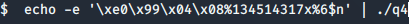 最初の\xe0\x99\x04\x08でputchar関数のアドレスを指定している。リトルエンディアンで記述する必要があるので注意。